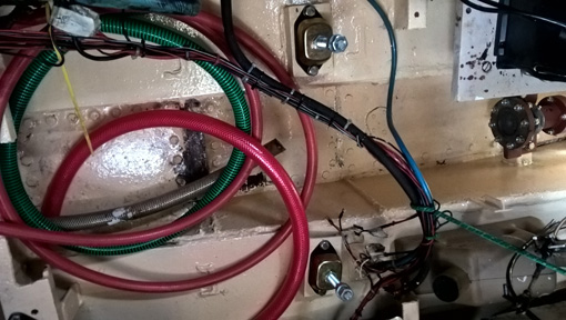 2 der neuen Füße und die Boilerschläuche in rot
